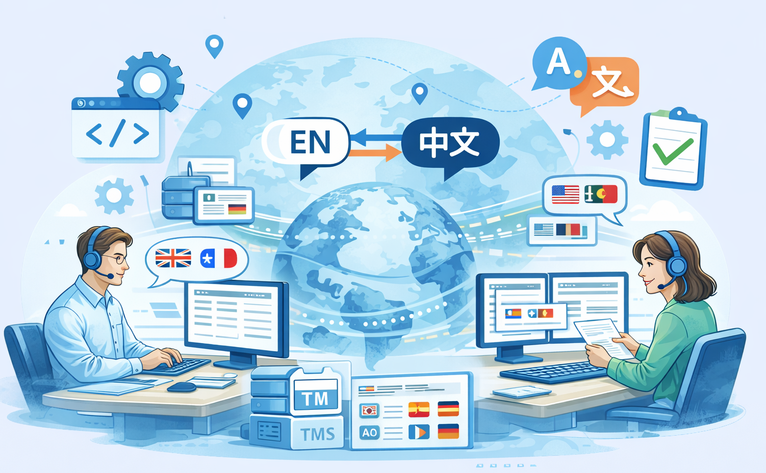 - Briefing and asset preparation — glossaries, style guides, translation memories gathered before work begins